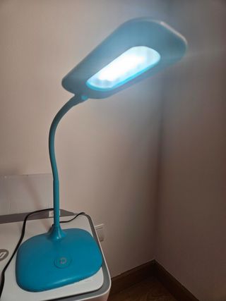 Lámpara de escritorio con un diseño moderno y funcional. Ideal para iluminar tu espacio de trabajo o estudio. - Brazo articulado para ajustar la luz. - Base estable y robusta. - Interruptor integrado en la base.
