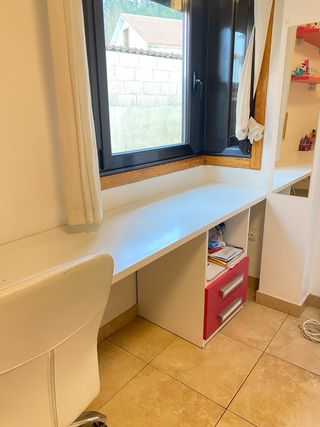 Pack de mobiliario para tu hogar. - 3 escritorios 2 de adulto con ruedas antiarañazos hechas a medida y en buen estado. + 1 infantil IKEA) SUNDVIK de IKEA en blanco: Escritorio infantil, blanco, 60x45 cm - 1 mesa infantil IKEA MVV MEAMMUT de IKEA en rosa: Mesa para niños, interior/exterior blanco, 77x55 cm Se entregan en mano, en Pontevedra.