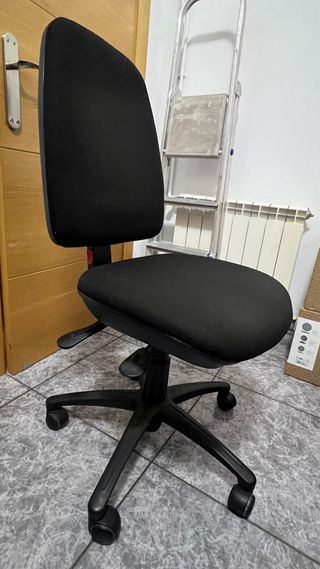 Silla de oficina con base giratoria y ruedas. - Respaldo ergonómico. - Asiento acolchado. - Base de plástico resistente.