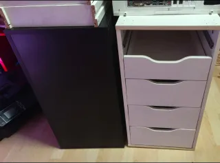 Cajonera negra de Ikea con tablero. - Cajones amplios y funcionales. - Tablero de madera resistente. - 2 patas negras.