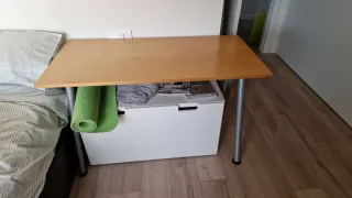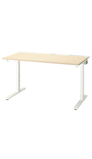 Escritorio Mittzon con superficie de madera y estructura de metal. - Color beige y blanco. VENDO POR CAMBIARLO A UNO MAS GRANDE. El original esta desmontado y por eso no hay fotos, pero esta en perfectas condiciones, utilizado menos de 1 año para teletrabajo. Urge vender. Opción a llevarlo si eres del Valles Occidental.