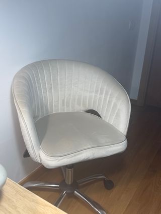 Elegante silla de escritorio con un diseño moderno y confortable. - Tapicería de terciopelo. - Base y ruedas de metal.