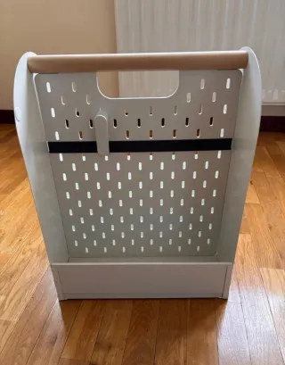 Papelera de tamaño mediano con un diseño moderno. Especial para oficinas, despachos y escritorios. Su diseño abierto permite una fácil ventilación evitando malos olores de la basura. Tiene polvo de estar en el trastero, si te interesa te la limpio en profundidad. Tengo otra más pequeña si te llevas las dos te las dejo en 10 euros 😋