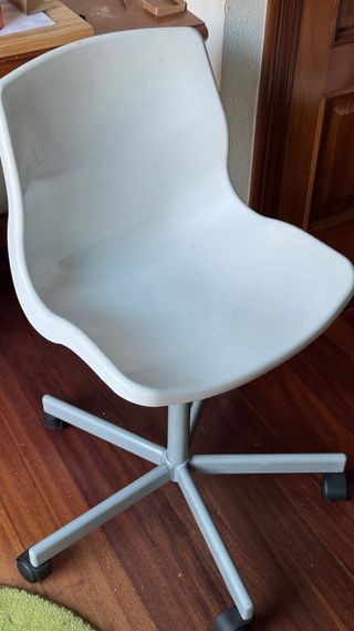 Conjunto de dos sillas de escritorio de color gris, de Ikea. Su diseño moderno se adapta a cualquier espacio. - Asiento y respaldo ergonómicos. - Base de cuatro patas estable. - Altura regulable. Se venden las 2 juntas por 8€ o por separado 5€ cada una.