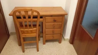 Escritorio de madera provenzal. Medidas: fondo 49cm, ancho 109cm y alto 79cm. Tiene algunas marcas que puede solucionarse con lija y barniz.