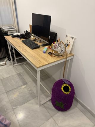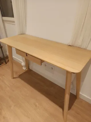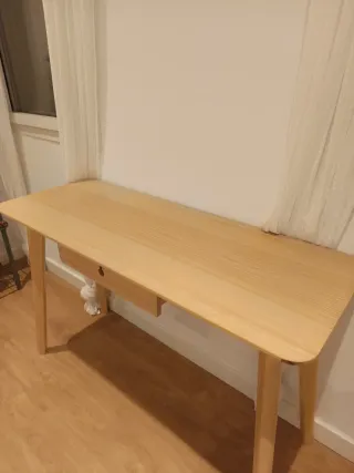 Mesa de escritorio de Ikea en buen estado. - Diseño moderno y funcional. - Acabado en madera clara.