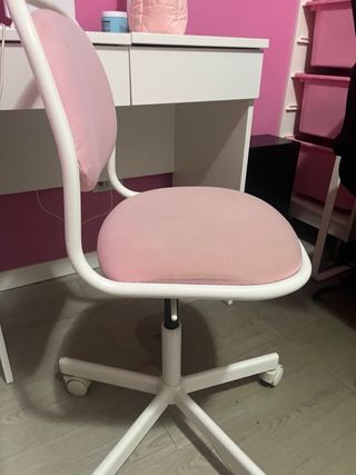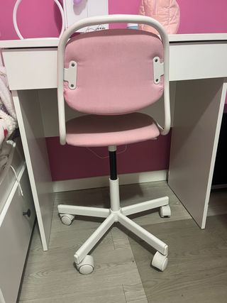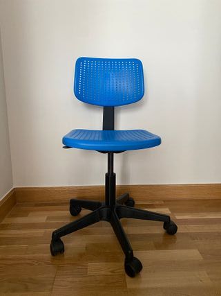 Silla de escritorio infantil de la marca Ikea. Su diseño es moderno y funcional, ideal para un espacio de estudio. - Base con ruedas para fácil movilidad. - Respaldo y asiento acolchados para mayor comodidad. - Estructura de metal resistente.