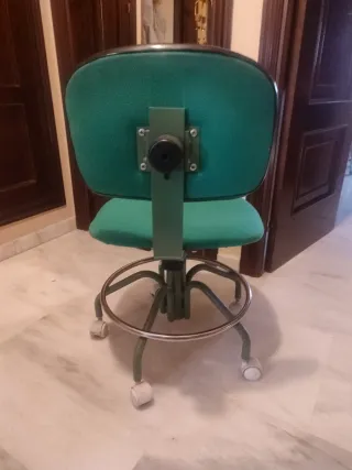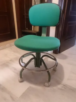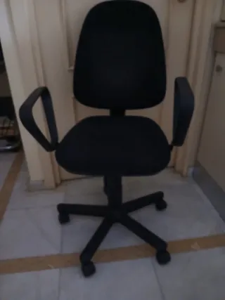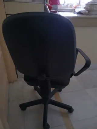 Silla de estudio con diseño giratorio,la silla tiene el respaldo un poco holgado y los brazos movibles,por ello el precio de 6€, pero si eres apañado o manitas seguro que lo arreglas, el resto y tapiceria perfecta - Base de cinco patas para mayor estabilidad. - Ruedas para facilitar el desplazamiento.l