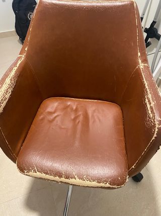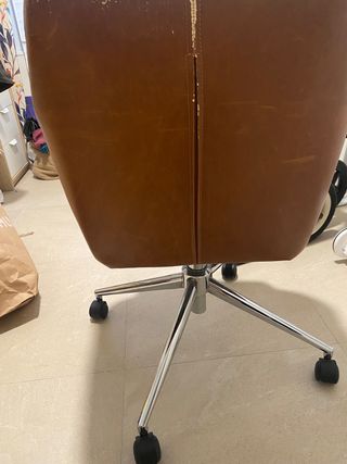 Silla de escritorio moderna y cómoda, ideal para cualquier espacio de trabajo o estudio. - Base metálica con ruedas para fácil movilidad. - Diseño ergonómico con asiento y respaldo acolchados. Tiene rasguños del uso, pero para alguna funda y demás está perfecto su acolchado y asiento