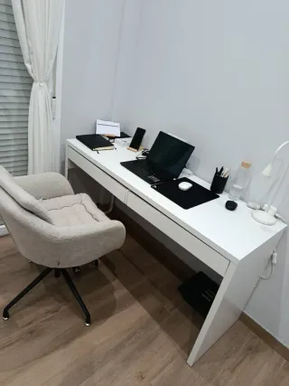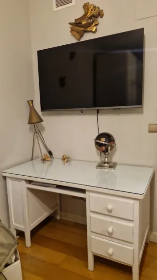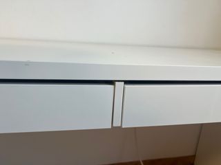Práctico escritorio de Ikea con un diseño moderno y funcional. Ideal para cualquier espacio. - Superficie lisa y fácil de limpiar. - Cajón integrado para almacenamiento. - Orificio pasacables para una mejor organización. Tengo 3. Descuento por comprar todas.