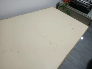 Mesa de escritorio con tablero y caballetes de madera de haya. Ideal estudiantes u oficinas que necesitan un espacio de trabajo grande. - Tablero de color beige aglomerado melaminado haya. - Caballetes de madera natural de Haya. Medidas tablero: Largo: 2 metros Ancho: 60 cm Alto: 2 cm Medidas patas*: Alto: 73 cm *las patas abiertas ocupan un ancho de 37cm. El tablero tiene agujeros para atornillarlo a las patas.