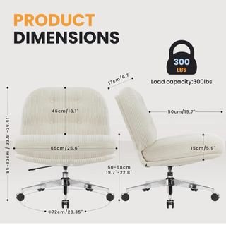 Silla de escritorio con un diseño vintage y tapizado en corduroy (especie de pana). - Base metálica con ruedas. - Acabado en color beige y plateado. - Giratoria, transpirable y de diseño. - Es muy comoda. La silla la compramos nueva y finalmente no la necesitamos.