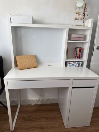Escritorio MICKE de Ikea en color negro-marrón. - Medidas: 105x50 cm. - Diseño moderno con un cajón y un hueco. - Orificio para pasar cables. - Se encuentra en perfectas condiciones aunque tenga algun rasgo evidente de que ha sido usada. Precio poco negociable por su buen estado.