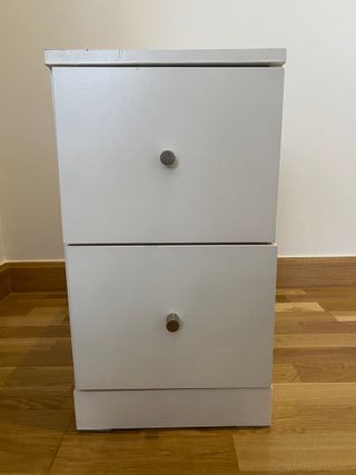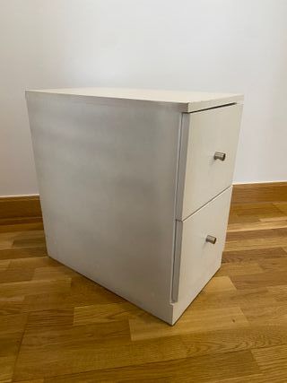Cajonera blanca con dos cajones, ideal para organizar tu espacio de trabajo - Diseño moderno y funcional. - Tiradores metálicos.