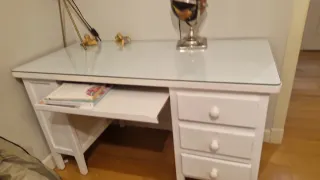 Se vende escritorio Smastad de Ikea, modelo antiguo. - Color verde y blanco. - Modelo antiguo con 3 cajones en vez de dos que trae ahora. - Hay que venir a recoger en Camas, Sevilla. No podemos enviar. - Va montado, excepto por la bandeja extraíble que va desmontada y los cajones que se sacan para mejor traslado.