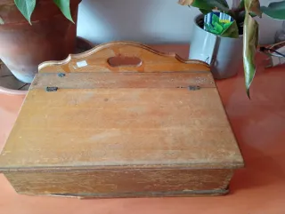 Este escritorio portátil es una pieza antigua con un diseño clásico. - Fabricado en madera. - Color marrón.