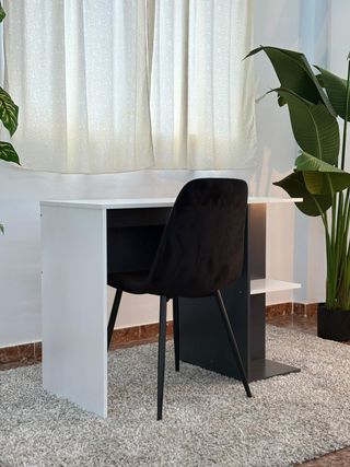 Este escritorio moderno y funcional es perfecto para tu espacio de trabajo o estudio. Su diseño limpio y minimalista se adapta a cualquier decoración. - Dos cajones para almacenamiento. - Superficie amplia para colocar objetos. 1 metro de largo ancho 36’5 cm altura 87cm