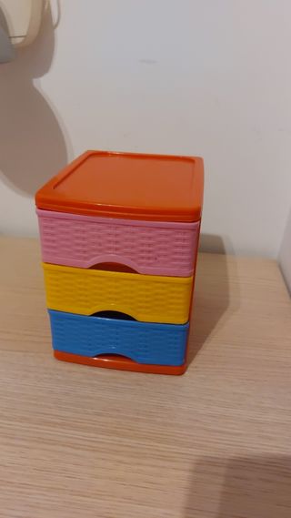 Práctica cajonera de escritorio con varios compartimentos. - Diseño apilable. - Ideal para organizar pequeños objetos.
