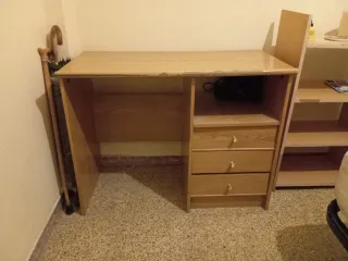 Conjunto de librería y escritorio de madera. - Estanterías superiores para libros y objetos. - Superficie de trabajo amplia. - Compartimentos de almacenamiento integrados En muy buen estado Venta únicamente en persona