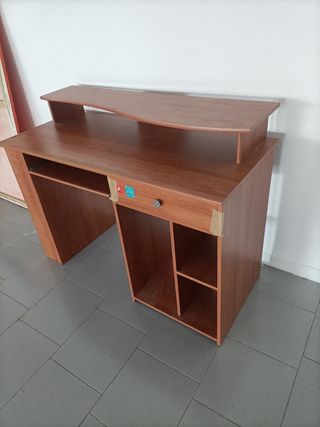 Escritorio amplio en melanina poco uso,123x55cm y altura 78-93 cm. Cajón estantes y lejas laterales. *Recoger en Yecla montado.