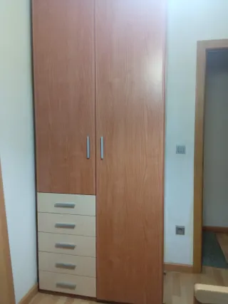 SE VENDE DORMITORIO COMPLETO Mueble de dormitorio juvenil con cama y almacenaje diseñado para ahorrar espacio. Prácticamente como nuevo - Estructura de madera clara, con mesa de escritorio. - Estanterías - Armario - 2 Camas con colchones. - 2 Edredones - 2 Sábanas de verano - 2 Sábanas de invierno - 2 Almohadas - 2 Cojines - Silla de escritorio La estructura de las camas mide 240x240x170 El armario mide 190x240x100 El escrito 240x74x61 Las camas son de 90x1'90 y 90x1'80. El desmontaje y transporte corre a cargo del comprador.