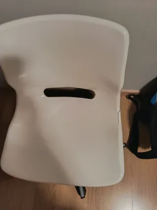 Silla de oficina con un diseño moderno y ergonómico. Tiene una pequeña grieta como se puede apreciar en la foto, pero la tiene ya tiempo y no va a más...