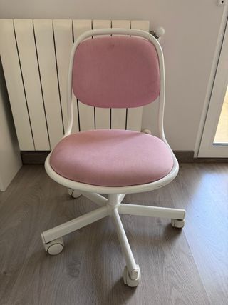 Silla de escritorio giratoria con asiento y respaldo acolchados en color rosa. - Estructura metálica. - Base de plástico con ruedas. - Altura regulable.