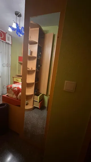 Conjunto de 2 camas para colchón de 90, una alta y otra nido, incluye los colchones, con 1 escritorio con Cristal súperior, con dos cajones y puerta lateral con lejas, 1 mesita de noche 3 con cajones con cristal superior, 2 baldas colgantes con cristal, 2 armarios altos doble puerta y 1 estantería, en color arena, muy buen estado y madera de calidad, se puede desmontar. no se envía ni se lleva a domicilio, sólo recoger. Medidas -mueble cama doble 200x100x90 -Mesita 65x50x43 -escritorio 260x75x50 -mueble armario y estantería 250x 190x 32. preferiblemente vender conjunto pero se puede vender por separado, preguntar.