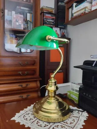Lámpara Escritorio Vintage Latón y Cristal Verde