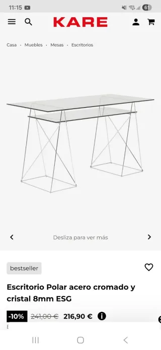 Elegante escritorio de diseño moderno, perfecto para cualquier espacio de trabajo o estudio. Nuevo a estrenar - Diseño de Kare Design. - Acabado cromado y transparente.