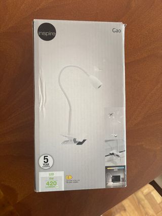 Lámpara de escritorio moderna con brazo flexible y pinza de sujeción. - 5 años de garantía. - 5W de potencia. - 420 lúmenes de brillo. - Luz de 4000K.