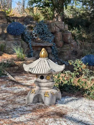 Transforma tu jardín en un santuario de paz y armonía con la Linterna Japonesa “Luz del Zen”, una pieza artesanal que fusiona arte, espiritualidad y elegancia natural. Tallada en piedra con detalles dorados, esta escultura representa la conexión entre la naturaleza y la calma interior. Su diseño tradicional japonés aporta equilibrio visual y serenidad, convirtiendo cualquier espacio exterior en un refugio contemplativo. Cada curva y símbolo grabado invita al descanso y la reflexión, evocando los jardines orientales donde el tiempo parece detenerse. - Detalles en color dorado. - Base con inscripciones. - Estructura de pagoda.