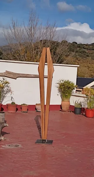 Escultura de jardín en madera, acero a su gusto y de diferentes medidas. Diseño escultórico personal. Cada obra está firmada.