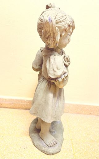 Estatua de hormigón con acabado en piedra. Representa una figura femenina.mide 1,70 y pesa entorno a los 200kg tiene conducto de agua para usar como fuente - Material: Hormigón - Color: Gris y blanco