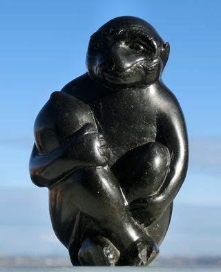 ESCULTURA EN PIEDRA MONO TALLA MÁRMOL BETEADO RARO
