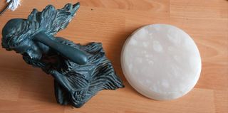 Hola, vendo en Trobajo del Camino (Leon), está preciosa escultura de bronce con una geoda de amatista con detalles en blanco y azul. Escultura de dos manos con alianza de compromiso entrelazadas formando un corazón, echo a mano, "Amor eterno' Esfera de amatista púrpura. La tengo desde hace más de 25 años decorando un mueble y la vendo por cambio de decoración. Regalo perfecto para una pareja de enamorados ó para un aniversario de bodas La amatista es una piedra de espiritualidad y exito, estimula las capacidades intelectuales y espirituales, coraje, satisfacción, intuición, confianza Se puede ver sin ningún compromiso. Posible envio