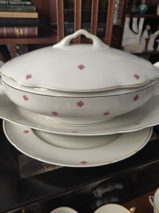 Vajilla de porcelana la casa Vigo MAH delicada flores y filo dorado. Compuesta por: 1 Fuente grande 40 cm 6 Platos hondos 23 cm de diámetro 6 Platos llanos 3 Platos de postre 1 Fuente ensaladera 23 x 23 cm 1 Salsera 1 Plato grande 32 cm de diámetro 1 Fuente mediana 29 cm 2 Fuentes pequeñas 21 cm 1 Sopera 38 cm Más artículos de colección y serendipia en mi perfil!! Escultura, estatua, monolito, Antiguo, bronce, lienzo, óleo, acrílico,arte, Antigüedad, coleccionismo, madera, cuadro, pintura, original, colección, porcelana, lladro, fajalauza, talla, tallada, decoración, interiorismo, exclusivo, única, vintage.
