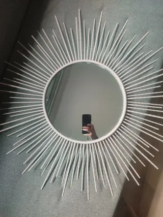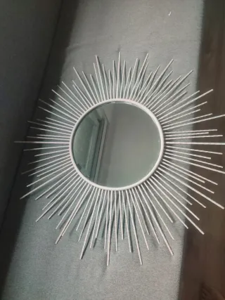 Elegante espejo decorativo con un diseño de sol. - Marco con varillas metálicas. - medida total 90 cm y el cristal 36cm
