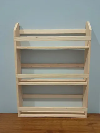 Especiero hecho con madera de pino natural. Capacidad 21 botes aprox aprox. Alto 44 Ancho 32