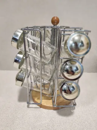 Práctico soporte para especias de metal cromado. - Diseño de rejilla. - Asas con muelle. Se hacen envíos por wallapop