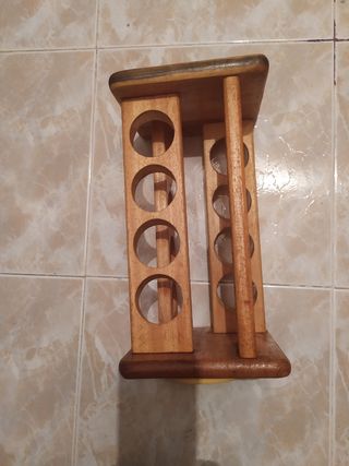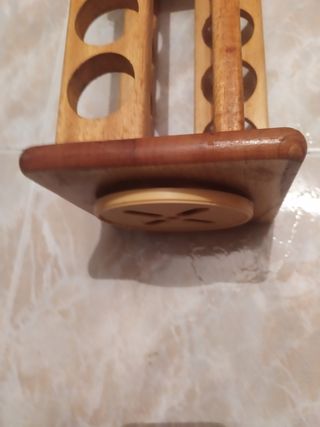 Dos espécielos de madera y asa de metal nuevos. Miden 28 x 18 cm y tienen 8 huecos de 8cm.El precio es de 15€ unidad.No hago reservas, ni negocio el precio.