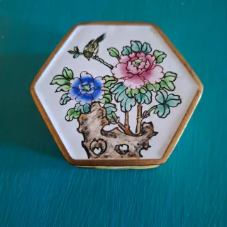 Preciosa cajita hexagonal de metal esmaltado. Decorada a mano. En muy buen estado. Ideal coleccionistas. espejo murano bambú mantilla porcelana plata contrastada Siam arquitecto tipo ratán modernista duralex benditera table ware bordado a mano lámpara opalina espejo artdeco forja terraza industrial étnico Tupperware broche colección flexo sol luna mandala amuleto china cloisonné vainica belen bronce retro tarot firmado mueble Japan buda artnouveau 13 gafas mazzega desing numerado rare el casco encaje bohemia bidasoa baquelita royal jardín benditera artesanía macetero porta religioso