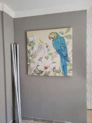 Lienzo de pájaros, tiene una pequeña marca de impresión, pero apenas se aprecia.
