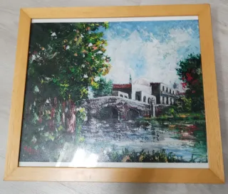 Cuadro al óleo paisaje con marco de madera