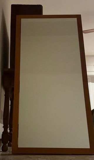 Espejo grande para baño o decoración en buen estado. Ideal para colocar sobre el lavabo o incluso apoyado en la pared para ampliar visualmente el espacio. Diseño sencillo y moderno, sin marco visible, con bordes biselados que le dan un acabado elegante. Reflejo muy claro y perfecto para cualquier baño, dormitorio o vestidor. 📏 Medidas: • Alto: 86 cm • Ancho: 70 cm Incluye soporte trasero para colgar en la pared. Se vende por cambio de mobiliario. Listo para recoger.