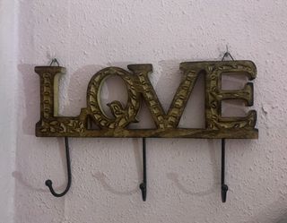 Este colgador de pared con la palabra LOVE añade un toque decorativo a tu hogar. Fabricado en madera con detalles tallados y ganchos de metal. - Diseño de la palabra LOVE. - Combinación de materiales madera y metal. - Tres ganchos para colgar objetos.