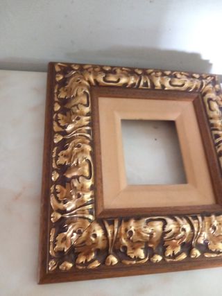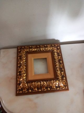 Esta en buen estado, premarco de madera pintado en dorado y marrón. Mide 27cm x 27cm Se puede ver sin compromiso.