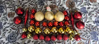 Adornos Bolas Navidad Doradas y Rojas