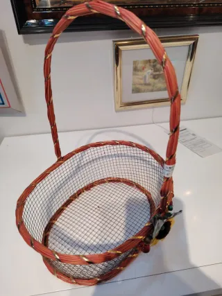 Preciosa cesta decorativa, ideal para añadir un toque especial a tu hogar. Está adornada con flores y detalles que le dan un encanto único. - Diseño ovalado. - Asa para facilitar su transporte. - Acabado con detalles dorados.
