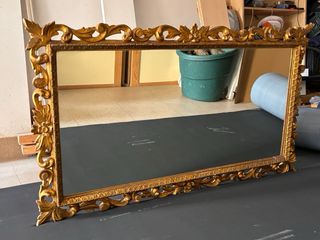 Precioso espejo de gran tamaño enmarcado en madera dorado. 170cm de ancho y 105cn de alto
